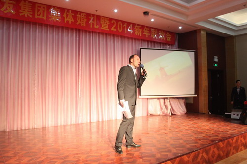 12月29日,“2013年綠友集團集體婚禮暨2014年元旦聯(lián)歡會”在總部所在地附近的德濟緣酒店舉辦,總部人員和北京綠友園林、北京工廠的全體人員參加了活動;在李敏總裁的關(guān)心下,會務(wù)組人員還特別邀請了8名退休員工前來參加活動。
