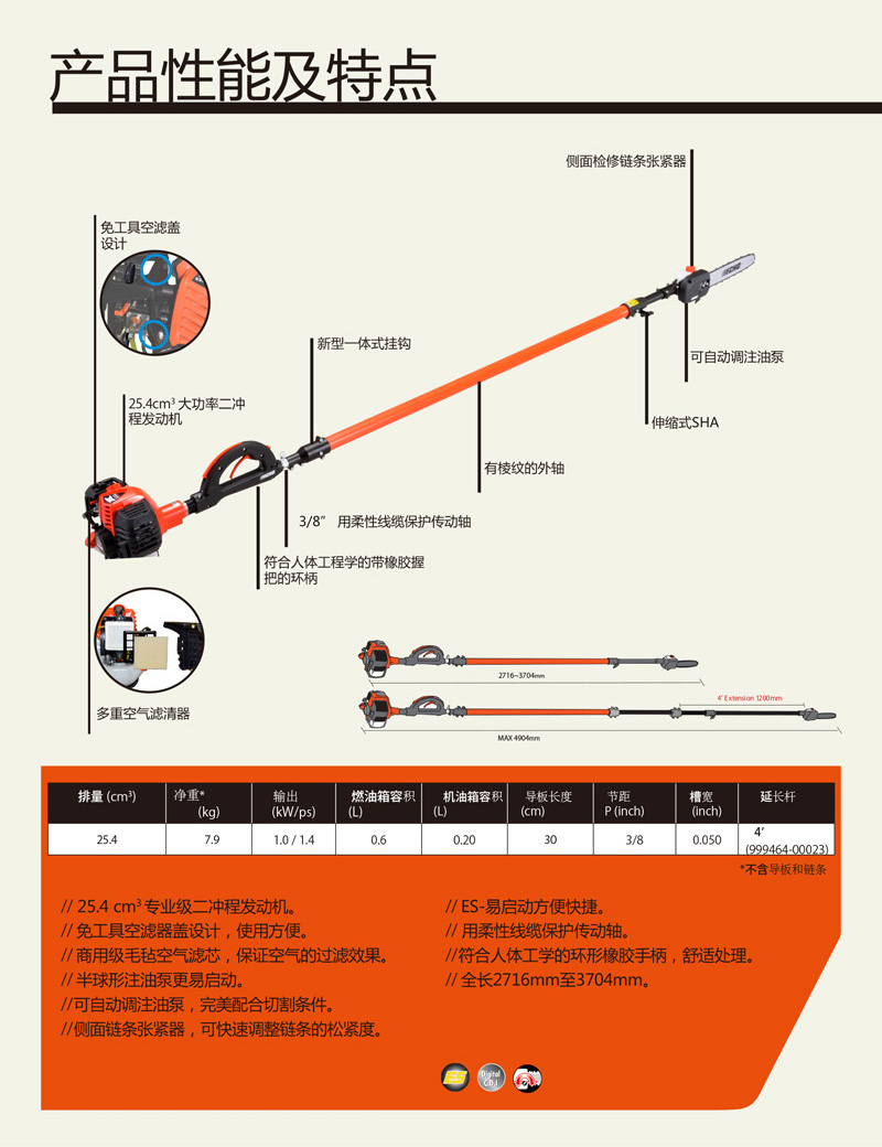 高枝油鋸廣泛應(yīng)用于森林采伐、造材、以及鐵路枕木鋸截等作業(yè)。愛可的高枝鋸易啟動,動力強勁而穩(wěn)定,讓您在修剪濃密的高枝時輕松自如。