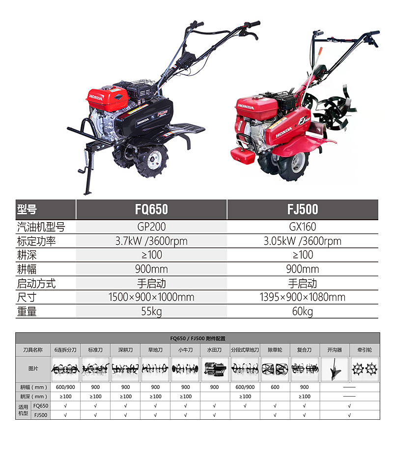 根據(jù)土壤硬度和耕作需要可選擇標(biāo)準(zhǔn)刀、深耕刀、除草輪、復(fù)合刀、開溝器、旱地刀等不同刀具。