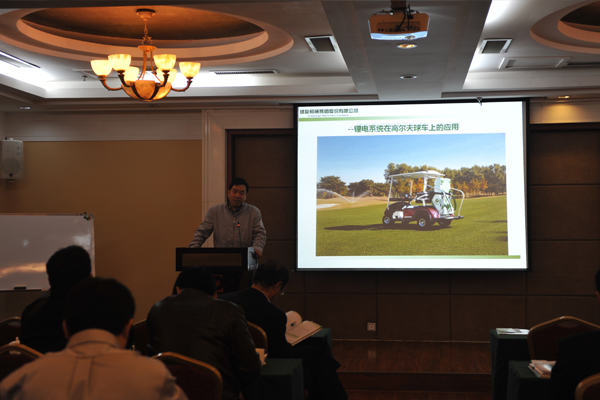 會議第二項內(nèi)容由綠友集團OHEV事業(yè)部張得玉先生匯報鋰電系統(tǒng)在高爾夫球場上的應用。這是個全新的課題,大家聽得非常認真。在高爾夫業(yè)內(nèi)現(xiàn)階段使用的都是鉛酸電池,張得玉先生從鉛酸電池對環(huán)境的污染和鉛酸廢舊電池如何處理,以及鉛酸電池性能與鋰電電池性能的巨大差距等幾個方面匯報了行業(yè)內(nèi)目前的狀況。由于鉛酸電池本身性能上有缺陷,使用壽命短,業(yè)內(nèi)以后的發(fā)展趨勢一定會向著更加環(huán)保、安全和性能卓越方面發(fā)展,綠友集團走在了行業(yè)的前面。