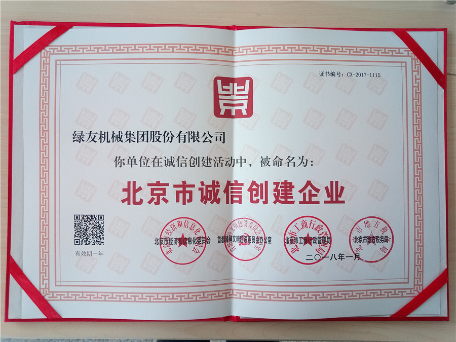1月,綠友集團通過復審,獲得“北京市誠信創(chuàng)建企業(yè)”證書。