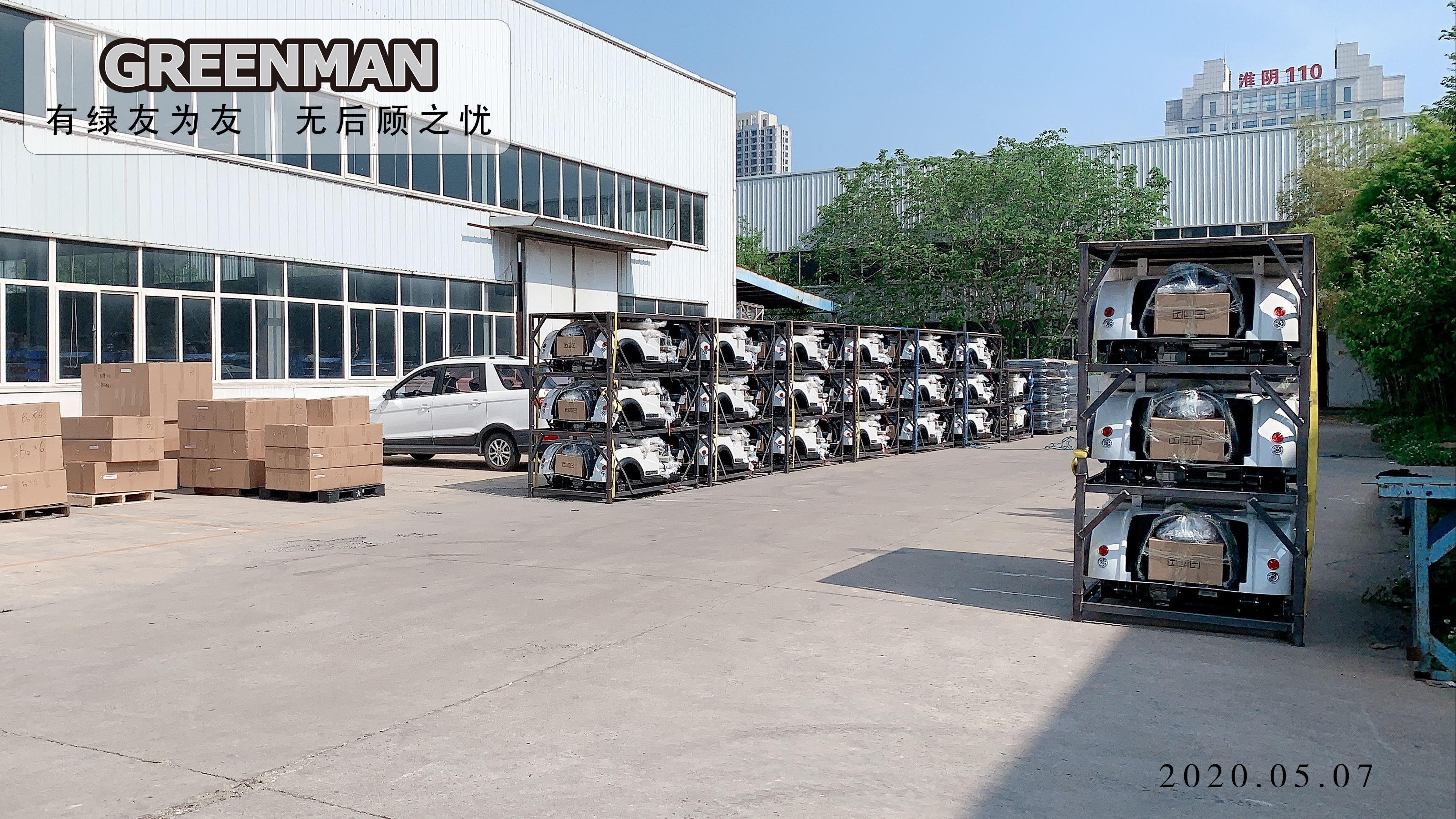 5月7日,滿載GREENMAN 電動(dòng)車(chē)輛的三個(gè)集裝箱駛離綠友集團(tuán)新能源車(chē)輛有限公司淮安生產(chǎn)基地。這批貨物將通過(guò)海運(yùn)于5月下旬抵達(dá)曼谷。