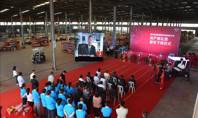 5月5日上午,在一串喜慶的鞭炮聲中,綠友集團新能源車輛有限公司投產(chǎn)典禮暨首車下線儀式正式開始。