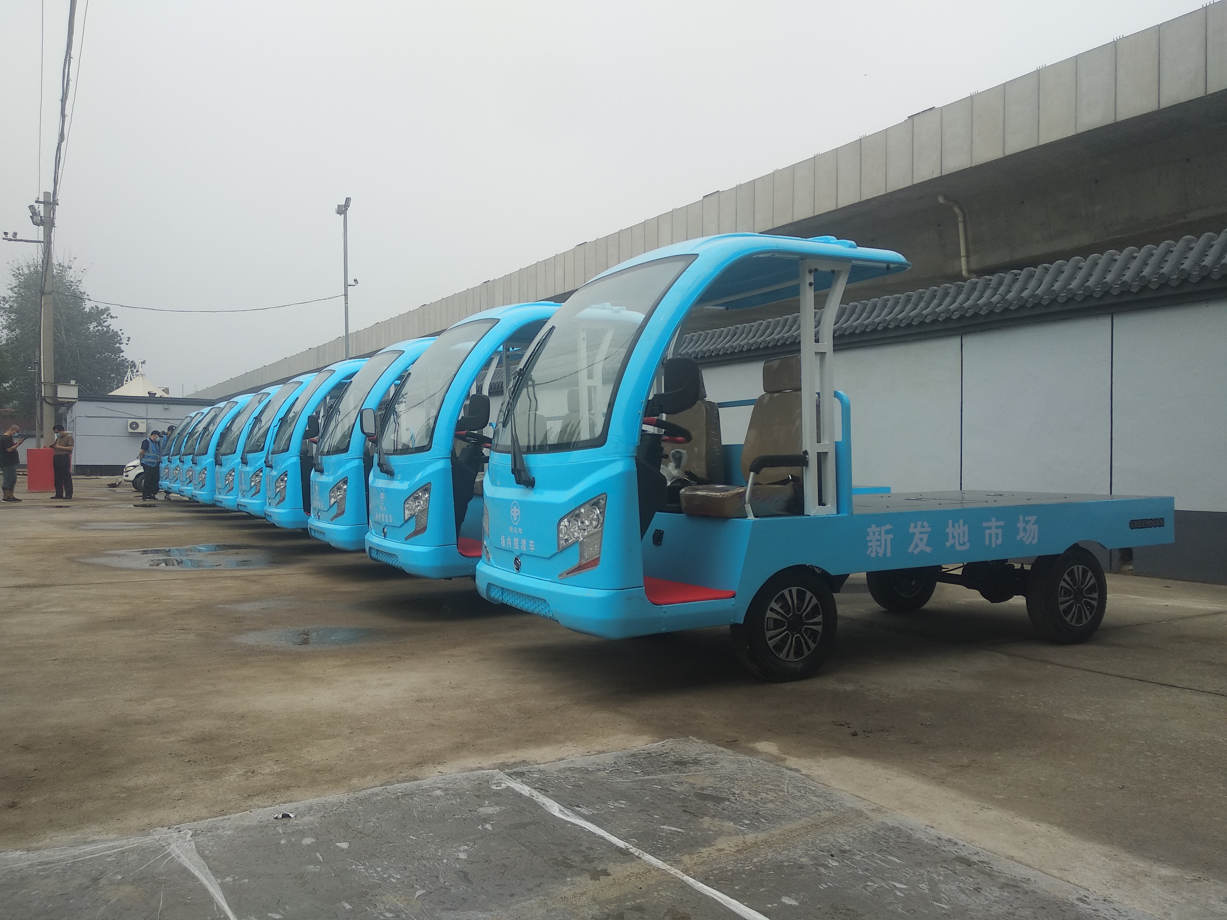 2020年8月15日早7:38,伴隨著瓜果蔬菜的芬芳,久違的新發(fā)地批發(fā)市場正式復(fù)市。隨之正式上崗的還有20輛綠友電動貨斗車。