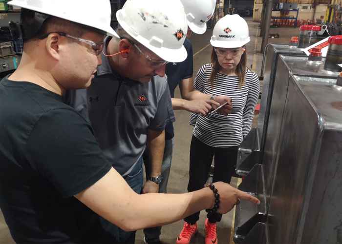 在木霸克國際市場總經(jīng)理Curt 先生的帶領(lǐng)下,綠友一行進(jìn)入木霸克的生產(chǎn)車間,了解每一臺高品質(zhì)產(chǎn)品是如何生產(chǎn)出來。從生產(chǎn)計(jì)劃,金屬加工,材料分選,品質(zhì)控制,現(xiàn)場管理,配件存儲,人員培訓(xùn),木霸克工廠毫無保留展示每一處生產(chǎn)細(xì)節(jié),而依靠這些細(xì)節(jié)的管控才能造就木霸克的品質(zhì)和市場認(rèn)可。參觀期間,Curt特意強(qiáng)調(diào)了材料分選是木霸克設(shè)備和其他品牌產(chǎn)品的重要區(qū)別,木霸克針對每一部位應(yīng)用和受力不用,在材料選擇都會進(jìn)行區(qū)分,例如進(jìn)料口下方的金屬板面由于需要經(jīng)受長時間撞擊,這塊板面的選擇使用和美國坦克裝甲相同材料,并以不同顏色區(qū)分開。當(dāng)消費(fèi)者購買設(shè)備時,面對不同品牌產(chǎn)品都是光鮮亮麗,而隱藏在漆層下面的細(xì)節(jié)決定他們之間的區(qū)別,發(fā)現(xiàn)這些細(xì)節(jié)的不同則需要深入生產(chǎn)車間,而這也是木霸克最希望客戶參觀他們生產(chǎn)的原因。