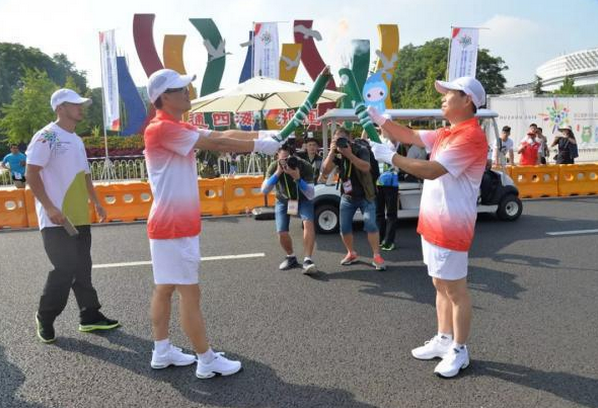 8月8日上午,浙江省第十六屆運動會火種匯聚·火炬?zhèn)鬟f暨2018年浙江省全民健身日主會場活動啟動儀式在湖州市民廣場舉行。