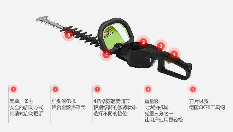 3. 4檔調速設計,根據(jù)植物的生長狀態(tài)選用合適的修剪速度。